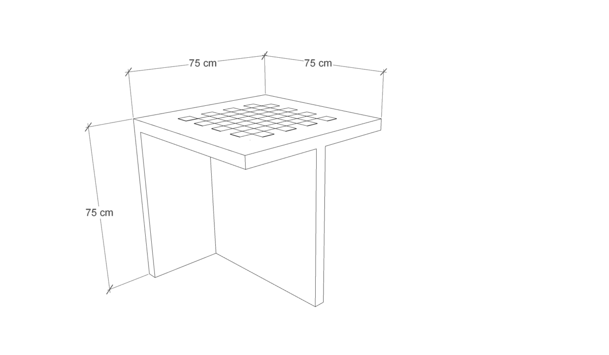 La Mesa Manila es una pieza en concreto arquitectónico que integra funcionalidad y experiencia en un solo elemento. Su superficie incorpora un tablero que invita a la interacción, convirtiéndola en un punto de encuentro activo dentro del espacio urbano o arquitectónico.